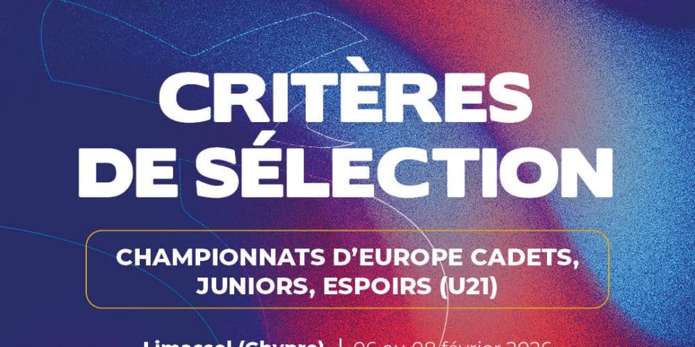 Dans le cadre du parcours de sélection des championnats d’Europe jeunes (cadets, juniors et espoirs) qui se dérouleront à Limassol (Chypre) du 6 au 8 février 2026, la Direction Technique Nationale dévoile les critères de sélection pour cette compétition.