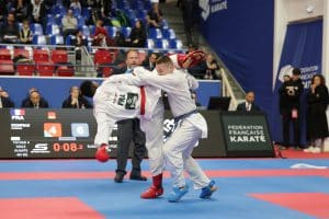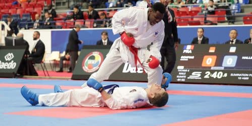 « Avant tout, j’avais à cœur de faire une belle compétition, je voulais me sentir libéré, je voulais m’exprimer, faire mon karaté, pour aller chercher cette place pour les championnats du monde, explique celui qui est entouré par Kenji Grillon et Daniel De Barros à Sarcelles. C’était ma dernière chance, je l’ai saisie et je suis content de la manière. Il y avait du stress évidemment, mais je travaille là-dessus et le plus important est de l’utiliser à bon escient, comme j’apprends à le faire en préparation mentale avec Ibrahim Gari qui fait un travail formidable avec moi. Pour être honnête, sur le Kazakhstanais, je n’ai jamais douté. Je l’avais déjà affronté, donc je connaissais un peu son karaté. Et la confiance, je l’ai gagnée sur le premier point que je lui ai mis. Quand il est passé devant, je ne me suis pas affolé, je savais que je saurais remonter. Le coaching était parfait aussi aujourd’hui avec des combats parfaitement préparés, à l’image du dernier contre l’Italien que je n’avais jamais combattu où j’ai strictement reproduit ce que nous avons vu à l’échauffement, sans jamais lui laisser l’opportunité d’y croire. Mais, c’est vrai, ce dernier coup de pied a été libérateur, je crois même avoir crié très fort. Je ne veux pas m’arrêter là, mais c’est un nouveau palier après être revenu de deux années de blessures et de galères il y a un an, voir remporté les championnats de France et avoir disputé les championnats d’Europe. Maintenant, je dois continuer sur mes points forts, en jouant sur mon grand gabarit et mon explosivité et gommer mes points faibles, mais ceux-là je les garde pour moi.» (sourire)